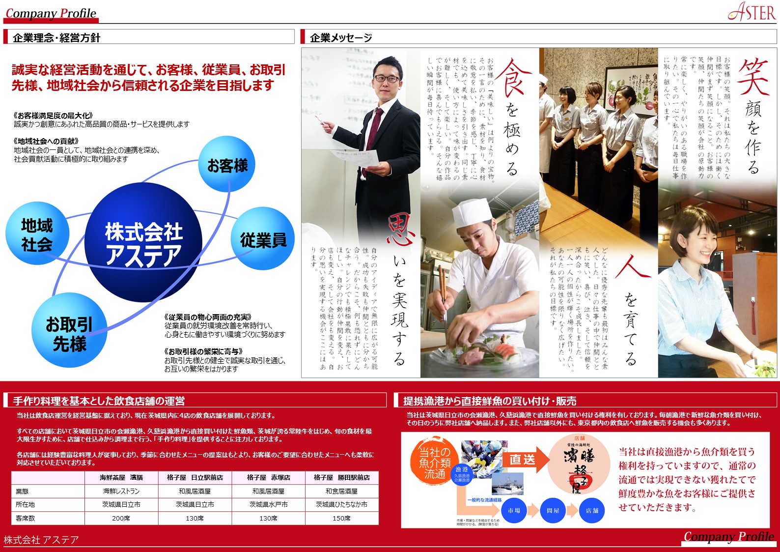 ----------------------------------------------------------- 正社員(店長候補、調理長候補)募集!! ----------------------------------------------------------- 飲食業に興味のある方、経験者・未経験者は問いません。 詳しくは、お問い合わせください。 ■問い合わせ先 : 本社 029-353-8310 ■資料 : こちら(JPG) ■新卒募集要項 : こちら(PDF) ■中途採用も随時受付中 |